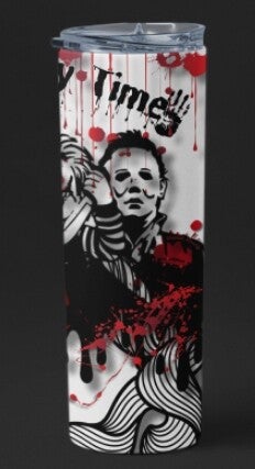 Get ready for a killer time with this 20oz stainless steel tumbler that brings all your favorite horror legends together in one epic design.