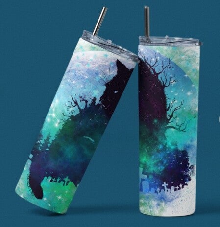 đđâŦ Cosmic Cat & Graveyard Tumbler – 20oz đĒĻâ¨